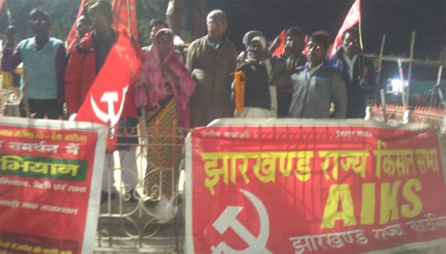 रांची: Jharkhand State Farmer झारखण्ड राज्य किसान सभा द्वारा दिल्ली किसान आन्दोलन में भाग लेने जा रहे उड़ीसा के एक हजार किसानों के जत्था का बुंडू में भव्य स्वागत किया गया एवं शहीद बिरसा मुंडा प्रतिमा पर माल्यार्पण किया गया। किसान विरोधी कानून वापस लो, किसान जीतेगा तो देश जीतेगा, किसान बचाओ ,देश बचाओ, आंदोलनकारियों को लाल सलाम आदि नारे लग रहे थे। मुख्य वक्ता के रूप में झारखंड राज्य किसान सभा के उपाध्यक्ष सह अखिल भारतीय किसान कौंसिल सदस्य सुफल महतो ने कहा किसान आन्दोलन करो या मरो के संकल्प के साथ संघर्ष कर रहा है,60 है ज्यादा किसानों ने शहादत दे चुके हैं।कृषि कानून की वापसी से कम कोई समझोता नहीं हो सकता। किसान संघष एकता मंच के नेता हिमांशु तिवारी ने कहा किसान आन्दोलन में शामिल होने के लिए हम दिल्ली जा रहे है।गौतम पाल ने कहां किसान आन्दोलन के सामने सरकार को घूटना टेकना ही पड़ेगा।अक्षय ने कहा कृषि कानून कारपोरेट के हित में है। रांची जिला किसान सभा के जिला सचिव विश्व देव सिंह मुंडा ने कहा किसान विरोधी कानून का एतिहासिक विरोध जारी है।इस अवसर पर अमर सिंह मुंडा, मदन मुंडा, रतन महतो,  रीता स्वासी,  दिनेश महतो,  प्रेम चंद पातर, उमेश महतो, बसंत मुंडा,  राजेंद्र मुंडा, मनीया महतो,  महावीर महतो, अनूप दता , रंजीत मोदक, मदन महतो, भीम राम, हरदेव चौघरी, बबलु राम, रघुनंदन राम गणे चौधरी, लक्षु कोइरी, टून टून साव,सुभाष महतो सहित काफी संख्या में लोग उपस्थित थे।