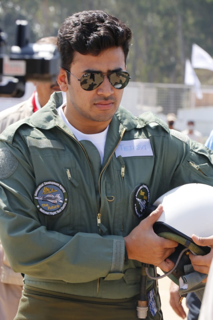 तेजस्वी सूर्या ने तेजस लड़ाकू विमान में भरी उड़ान