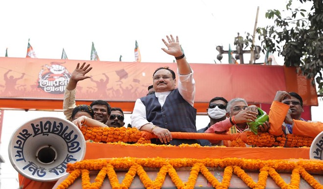 नवद्वीप: पश्चिम बंगाल के नदिया जिले से पार्टी की परिवर्तन यात्रा की भाजपा राष्ट्रीय अध्यक्ष जे पी नड्डा ने शुरुआत की ।नड्डा ने कहा कि आगामी विधानसभा चुनावों में लोगों ने ममता बनर्जी की सरकार की विदाई का मन बना लिया है। उन्होंने तृणमूल कांग्रेस सरकार पर प्रशासन के राजनीतिकरण और पुलिस के अपराधीकरण का भी आरोप लगाया। नड्डा ने दावा किया कि टीएमसी का नारा मां, माटी, मानुष से बदलकर वास्तविकता में तानाशाही, तोलाबाजी और (मुस्लिम) तुष्टिकरण हो गया है। उन्होंने कहा कि टीएमसी सरकार ने उन लोगों के साथ विश्वासघात किया है जिन्होंने उस पर भरोसा जताया था। उन्होंने आरोप लगाया कि ममता बनर्जी के शासन में सिर्फ टीएमसी नेताओं का फायदा हुआ और यहां तक कि अंफान तूफान के बाद राहत के लिये भेजी गई रकम में भी उनके द्वारा हेरफेर की गई। नड्डा ने जय श्रीराम के नारे को लेकर ममता की नाराजगी का मुद्दा भी उठाया और इस नारे को देश की संस्कृति से जुड़ा बताया। उन्होंने कहा, वह जय श्रीराम के नारे से इतनी नफरत क्यों करती हैं? अपने ही देश की संस्कृति से जुड़ना गलत है क्या? वे (टीएमसी) वोट-बैंक की राजनीति के लिए देश की संस्कृति को नकारना चाहते हैं।बनर्जी ने नेताजी सुभाष चंद्र बोस की जयंती पर आयोजित एक कार्यक्रम के दौरान प्रधानमंत्री नरेंद्र मोदी की मौजूदगी में ह्यजय श्रीराम का नारा लगने के बाद संबोधन से इनकार कर दिया था। विधानसभा चुनावों से पहले बनर्जी द्वारा शुरू किये गई घरेलू-बाहरी की बहस का उल्लेख करते हुए भाजपा अध्यक्ष ने कहा कि उनकी पार्टी का प्रदेश नेतृत्व पश्चिम बंगाल की संस्कृति की रक्षा करेगा और उसे प्रगति के पथ पर लेकर जाएगा।