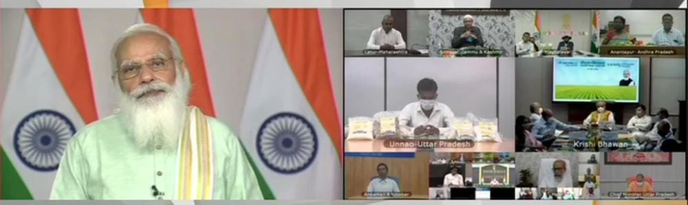नयी दिल्ली: आज प्रधानमंत्री नरेंद्र मोदी ने वीडियो कांफ्रेंसिंग के जरिए पीएम किसान सम्मान निधि की 8वीं किस्त जारी की । PM मोदी ने 9.5 करोड़ से अधिक किसानों को 20,000 करोड़ रुपये से अधिक की राशि ट्रांसफर की। इस कार्यक्रम में केंद्रीय कृषि मंत्री नरेंद्र सिंह तोमर भी मौजूद रहे।