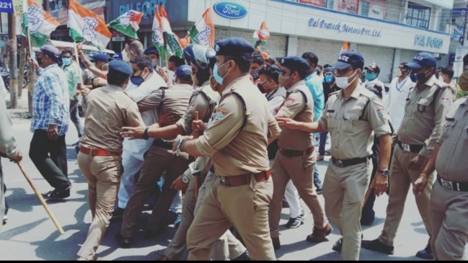 देहरादून । सीएम ईएसआई अस्पताल और कोविड सेंटर का निरीक्षण करने पहुंचे तो कांग्रेसियों ने विरोध करना शुररू कर दिया। कांग्रेसी विरोध करने के लिए सीएम के कार्यक्रम स्थल की ओर बढ़ने लगे तभी पुलिस ने उन्हें रोक दिया।