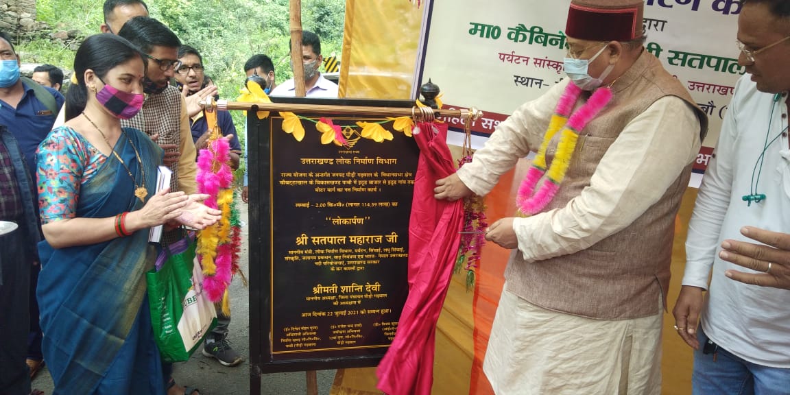 प्रदेश के पर्यटन लोक निर्माण, सिंचाई, मंत्री एवं चौबट्टाखाल विधायक सतपाल महाराज ने अपने विधानसभा क्षेत्र के अंतर्गत इठुण बाजार से इठुण गाँव तक राज्य योजना के अंतर्गत 114.39 लाख की धनराशि से निर्मित 2 किमी लंबे मोटर मार्ग का लोकार्पण किया। उन्होंने विकासखंड पाबौ के विधानसभा क्षेत्र चौबट्टाखाल के अंतर्गत स्थित आंगनवाडी केंद्रों में अध्ययनरत बच्चों के बैठने के लिए विधायक निधि से क्रय किए गए फर्नीचर का वितरण करने के साथ-साथ मुख्यमंत्री महालक्ष्मी किट भी महिलाओं को वितरित की। सतपाल महाराज ने नाबार्ड योजना मद के अंतर्गत विकासखंड एकेश्वर के मासौं (मसेटा थपलियाल) लिफ्ट सिंचाई योजना जिसकी लागत 223. 11 लाख रुपए है का भी लोकार्पण किया। महाराज ने राज्य योजना मद के अंतर्गत मासौं से मासौं इंटर कॉलेज तक 1.575 किलोमीटर मोटर मार्ग जिसकी लागत 83.01 लाख है का शिलान्यास करने के अलावा विकासखंड एकेश्वर के किर्खू-कोटा-पिपली मोटर मार्ग जिसकी लंबाई 2 किमी है के शिलान्यास जिसकी लागत 93. 90 है करने के साथ-साथ राज्य सेक्टर (नाबार्ड) के अंतर्गत विकासखंड एकेश्वर के ही किर्खू में बडोली गदेरा एवं धावलागढ़ में बाढ़ सुरक्षा योजना का लोकार्पण भी किया।