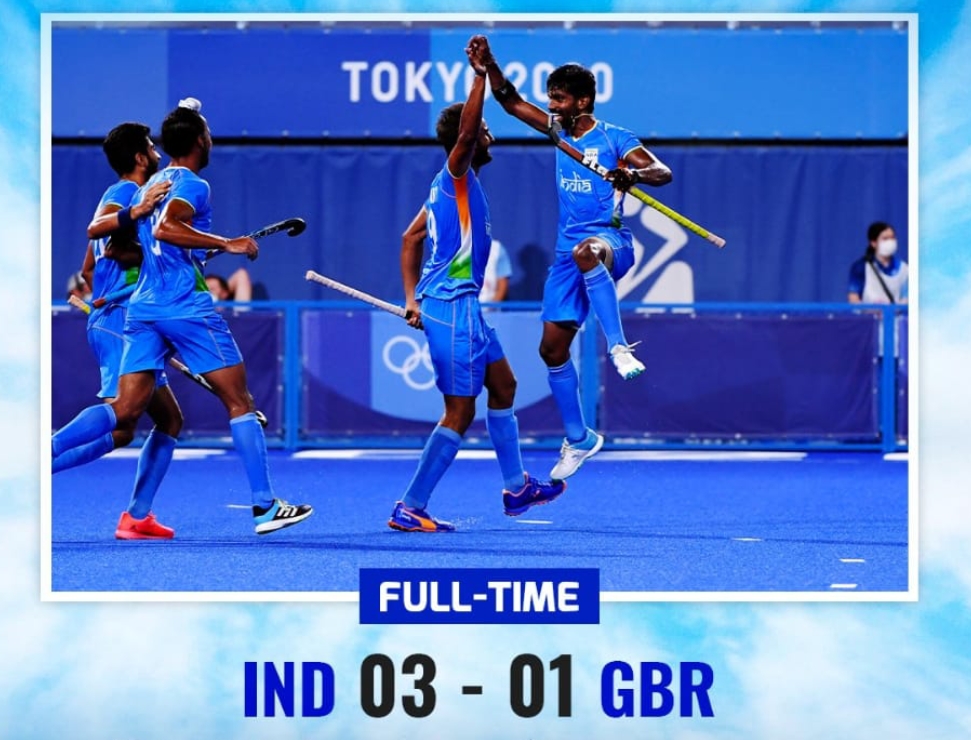 आखिरी मिनटों में ब्रिटेन के हमले बढ़ गए, लेकिन 10 खिलाड़ियों के साथ मैदान में जमी भारतीय टीम ने जबरदस्त काउंटर अटैक किया और 57वें मिनट में हार्दिक सिंह ने एक बेहतरीन गोल ठोककर भारत की बढ़त को 3-1 कर दिया। आखिरी 3 मिनटों में भारत ने ब्रिटेन को और कोई गोल नहीं करने दिया और 3-1 की जबरदस्त जीत के साथ सेमीफाइनल में अपनी जगह पक्की की।1980 के बाद भारतीय टीम पहली बार मेडल के लिए दावेदारी पेश करेगी।