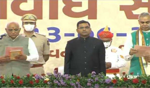 गांधीनगर। गुजरात के नवनियुक्त मुख्यमंत्री भूपेन्द्र पटेल ने राज्य के 17 वें मुख्यमंत्री के तौर पर पद और गोपनीयता की शपथ ली। राजभवन में आयोजित समारोह में राज्यपाल आचार्य देवव्रत ने उन्हें गुजराती भाषा में शपथ दिलायी।