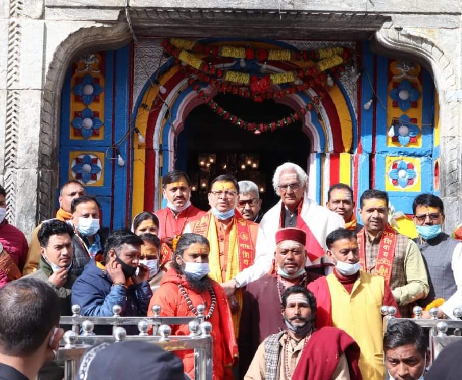हेली पेड पर देवस्थानम बोर्ड, जिला प्रशासन सहित तीर्थ पुरोहितों ने धामी की अगवानी की। वह मंदिर दर्शन को पहुंचे, जहां उन्होंने सोशल डिस्टेसिंग का पालन करते हुए बाबा केदारनाथ के दर्शन किये।