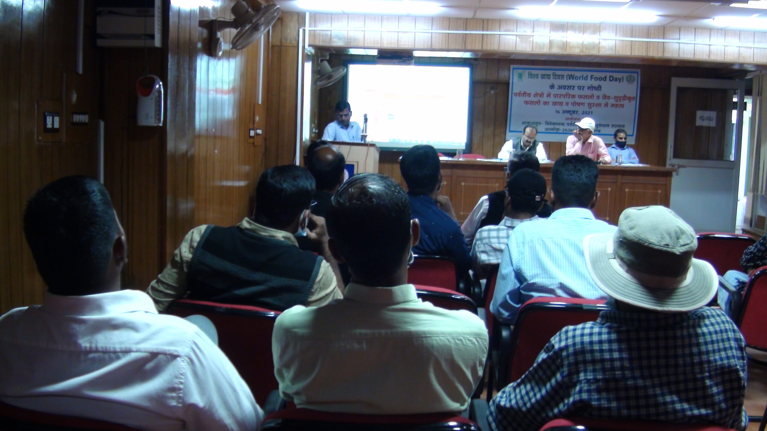 कार्यक्रम की शुरुआत वैज्ञानिक डा. आशीष कुमार सिंह द्वारा विश्व खाद्य संस्था की स्थापना व विश्व खाद्य दिवस के आयोजन की पृष्ठभूमि से संबंधित जानकार प्रदान करने से हुयी। उसके बाद संस्थान के वैज्ञानिक डा. महेन्द्र भिन्डा द्वारा पर्वतीय क्षेत्रों में पारंपरिक व क्षमतावान फसलों का खाद्य व पोषण सुरक्षा में महत्व व डा. राजेश खुल्बे द्वारा जैवसुदृढ़ीकृत फसलों का पोषण सुरक्षा में महत्व विषयों पर व्याख्यान दिये गये जिनमें वैज्ञानिकों द्वारा पारंपरिक फसलों तथा आधुनिक शोध तकनीकों से विकसित जैवसुदृढ़ीकृत फसलों के समायोजन से देश में खाद्य व पोषण सुरक्षा की चुनौतियों का सामना करने की दिशा में भाकृअनुप द्वारा किये जा रहे शोध प्रयासों की जानकारी साझा की गयी।
