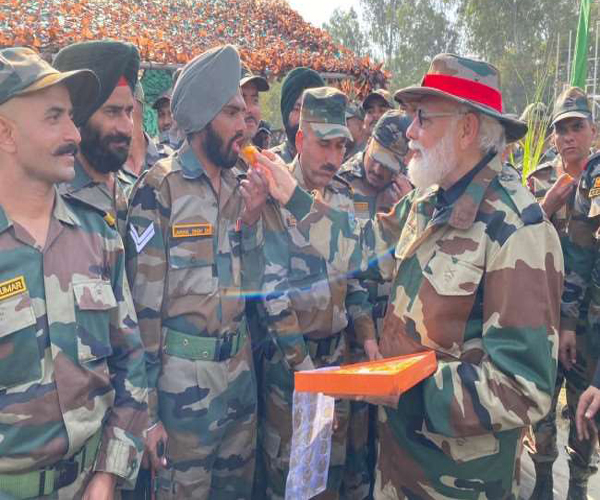 प्रधानमंत्री जम्मू तकनीकी हवाईअड्डे से नौशेरा पहुंचे। सूत्रों के मुताबिक, प्रधानमंत्री ने भारतीय सेना के जवानों के साथ दीपावली मनाई और मिठाई तथा फल बांटे।
