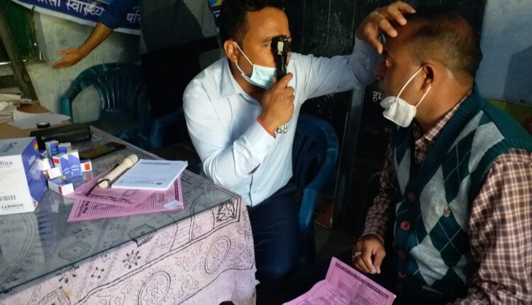 निशुल्क स्वास्थ्य शिविर में 80 ग्रामीणों का स्वास्थ्य परीक्षण किया गया।