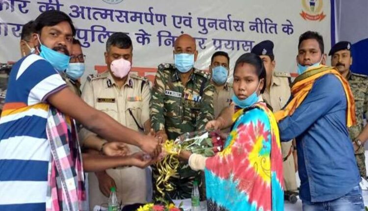 रांची रेंज डीआईजी पंकज कंबोज के कार्यालय परिसर में आयोजित सरेंडर कार्यक्रम में तीनों नक्सलियों ने सरेंडर किया।