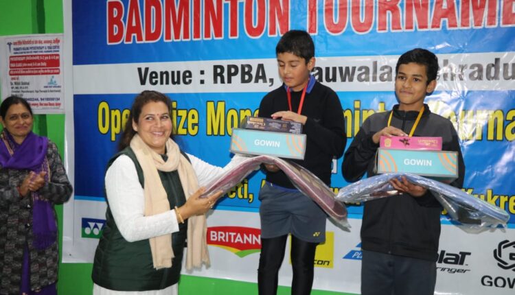 देहरादून। रामेश्वर प्रसाद मेमोरियल बैडमिंटन एशोसिएशन का प्रत्येक वर्ष की तरह इस साल भी भाऊवाला में ओपन टूर्नामेंट संपन्न हुआ। शनिवार से इस टूर्नामेंट का शुभारंभ किया गया। जिसका समापन 26 दिसम्बर को लक्ष्मी कपरूवान अग्रवाल द्वारा पुरस्कार तथा मेडल पहनाकर हुआ।