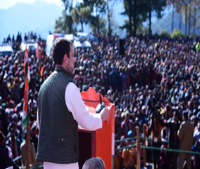 वह देश से कहते हैं कि पिछले 70 सालों में कुछ नहीं हुआ। यह सड़क, फैक्ट्री, ट्रेन सब जादू से बनी है। अगर हमारी सरकार आती है तो हम राज्य में चार लाख नौकरियां देंगे। राहुल गांधी ने कहा कि, हम पांच लाख गरीब परिवारों को हर साल 40 हजार रुपये उनके बैंक खाते में डलवाएंगे। हम एंबुलेंस, मोटरसाइकिल और ड्रोन के माध्यम से स्वास्थ्य सेवाओं को आपके घर तक पहुंचाएंगे।