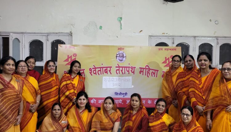 सिलीगुड़ी। अखिल भारतीय तेरापन्थ महिला मंडल ने किया जैन जीवन शैली के तहत आहार नामक कार्यक्रम का आयोजन। अखिल भारतीय तेरापंथ महिला मंडल के निर्देशानुसार तेरापंथ महिला मंडल, सिलीगुड़ी के तत्वावधान में रूपांतरण शिल्पशाला “आहार” का आयोजन किया गया।