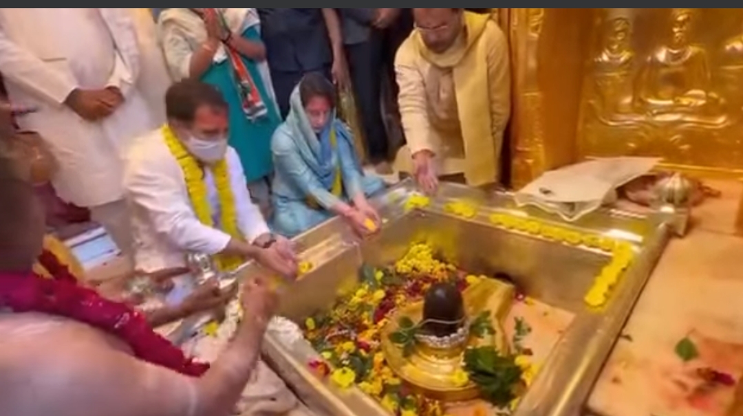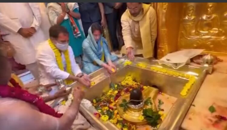 वाराणसी। कांग्रेस के पूर्व अध्यक्ष राहुल गांधी और कांग्रेस महासचिव प्रियंका गांधी वाड्रा ने शुक्रवार को काशी विश्वनाथ धाम में बाबा विश्वनाथ का दर्शन पूजन किया।