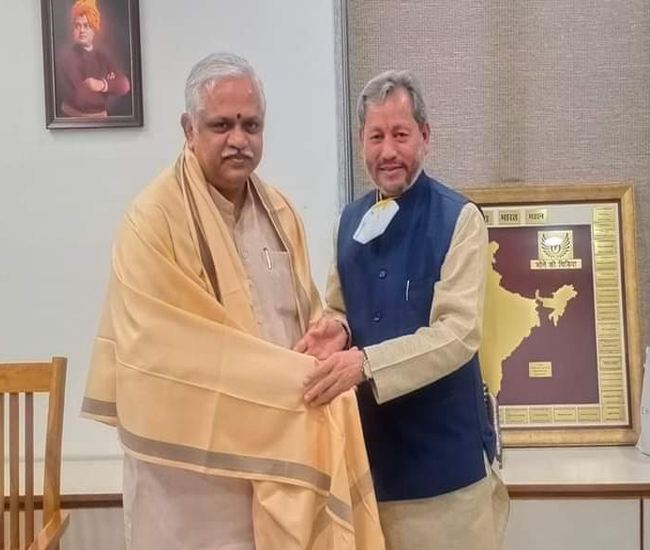 बीएल संतोष से मिले सांसद और पूर्व मुख्यमंत्री तीरथ