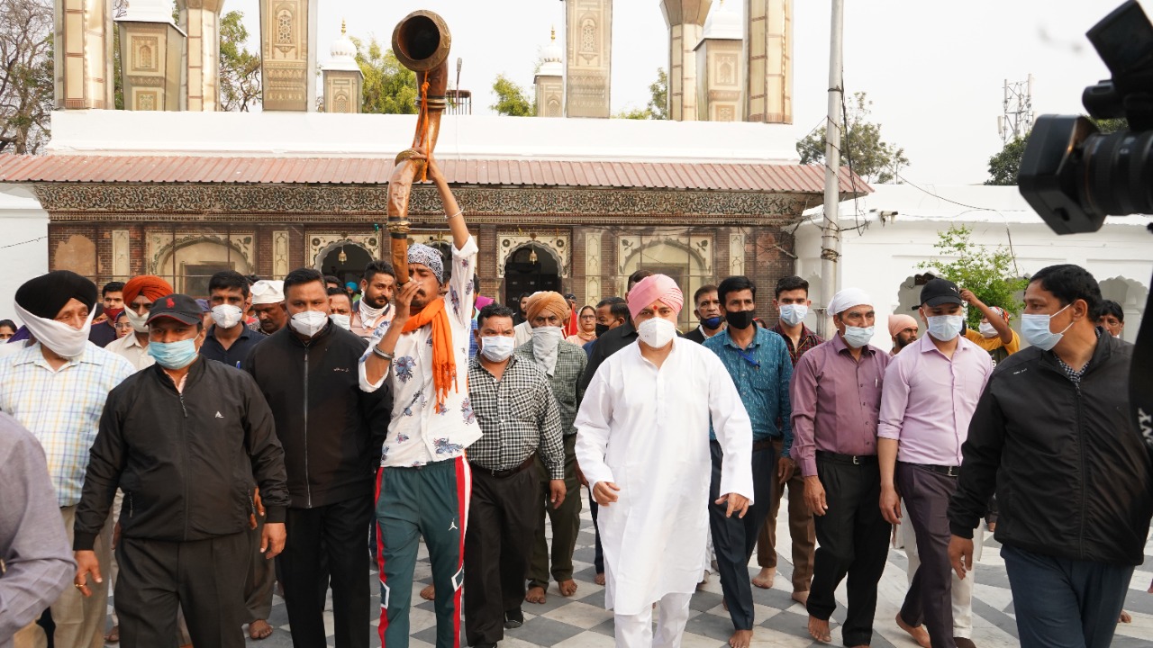 दर्शनी गेट व श्री दरबार साहिब परिसर में श्री दरबार साहिब के सज्जादानशीन श्रीमहंत देवेन्द्र दास जी महाराज की अगुवाई में पुष्प वर्षा के बीच संगत का जोरदार स्वागत हुआ। श्रीमहाराज जी ने संगत को दर्शन दिए व आशीर्वाद दिया।