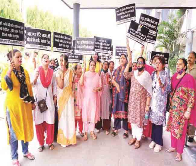 बिजली कटौती के विरोध में महिला कांग्रेस ने किया प्रदर्शन, ऊर्जा भवन के समक्ष जमकर की नारेबाजी