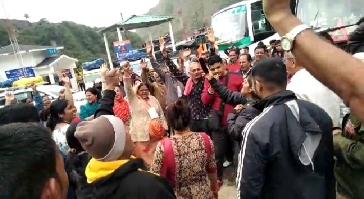 बडक़ोट। यमुनोत्री राष्ट्रीय राजमार्ग के बंद होने के कारण यमुनोत्री क्षेत्र में फंसे तीर्थ यात्रियों ने जानकीचट्टी में शासन प्रशासन के खिलाफ जमकर नारेबाजी की। यात्रियों कहा कि उन्हें यहां से शीघ्र निकाला जाए।