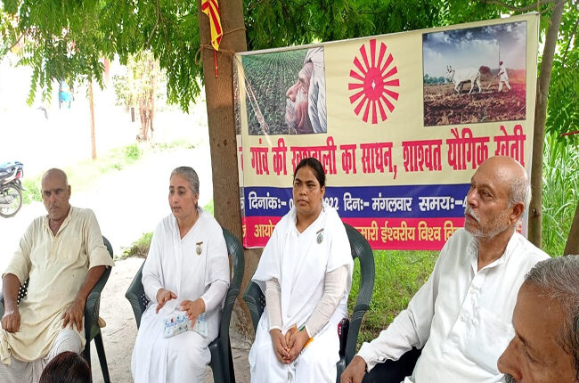 इसके बाद ब्रह्माकुमारीज बहनों व भाइयों ने किसानों के बीच जाकर उन्हें शाश्वत योगिक खेती के बारे में बताया।बीके गीता ने कहा कि किसान भाई अपने खेतों पर जाकर फसलों के सामने बैठकर योग लगाए और ईश्वर से गुणयुक्त अच्छी फ़सल उगने की कामना करें तो खेतो में सामान्य से अधिक व अच्छी फ़सल पैदा होगी।