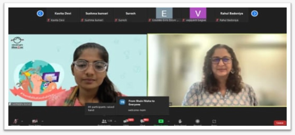 एजुकेट गर्ल्स की संस्थापिका सफीना हुसैन ने टीम बालिकाओं को संबोधित करते हुए कहा, “हमारा मिशन है बालिकाओं को शिक्षा से जोड़ना, जिसमें सभी टीम बालिकाएं ( स्वयंसेवक) अहम भूमिका निभा रहे हैं।