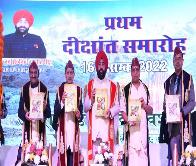 देहरादून। राज्यपाल लेफ्टिनेंट जनरल गुरमीत सिंह (से नि) ने उत्तराखण्ड आयुर्वेद विश्वविद्यालय के पहले दीक्षांत समारोह में बतौर मुख्य अतिथि प्रतिभाग किया। इस दौरान उन्होंने 1,698 छात्र-छात्राओं को उपाधियां प्रदान करने के साथ ही विभिन्न विषयों में सर्वोच्च अंक प्राप्त करने वाले 112 छात्र-छात्राओं को गोल्ड मेडल प्रदान किए। उन्होंने विश्वविद्यालय की वार्षिक प्रगति विवरणिका ब्रह्यकमल का भी विमोचन किया।