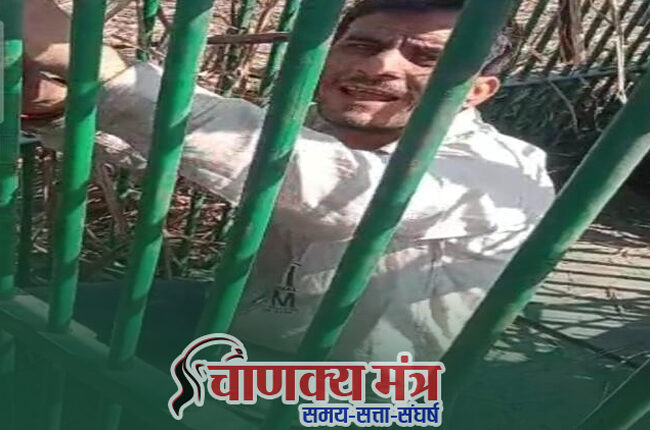 वन विभाग ने तेंदुए को पकड़ने के लिये पिंजड़ा लगा कर उसमें एक जिंदा मुर्गा छोड़ दिया।पिंजड़े में मुर्गे को देख एक युवक अपना भोजन बनाने की लालसा में पिंजड़े में बंद हो गया जिसे बाद में वन विभाग के कर्मचारियों ने मौके पर पहुंचकर आजाद किया।