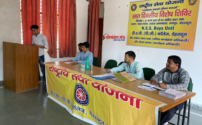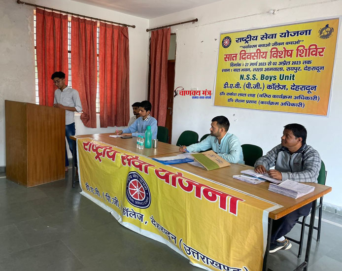 दिन के भोजन के बाद स्वयंसेवियों की एक भाषण प्रतियोगिता आयोजित की गई। जिसका विषय “सतत भविष्य के लिए सबसे जरूरी कार्य: पर्यावरण संरक्षण में व्यक्तियों की भूमिका” रखा गया। कार्यक्रम अधिकारी डॉ० रोशन प्रसाद इस प्रतियोगिता के निर्णायक रहे। जिसमें सांत्वना पुरस्कार वैभव तिवारी, तृतीय पुरस्कार प्रियांशु पंत, द्वितीय पुरस्कार कुशाग्र मिश्रा एवं प्रथम पुरस्कार प्रियांशु मेहरा एवं अभय रावत को संयुक्त रूप से दिया गया। इस अवसर पर वरिष्ठ कार्यक्रम अधिकारी डॉ० राकेश लाल शाह ने स्वयंसेवकों को प्रेरित किया एवं मंच पर प्रस्तुति देने के गुर सिखाए। उन्होंने स्वयंसेवकों को माता-पिता एवं गुरुजनों की जीवन संवारने में भूमिका के बारे में बताया। साथ ही स्वयंसेवियों को नैतिक मूल्यों की अहमियत भी समझाई।