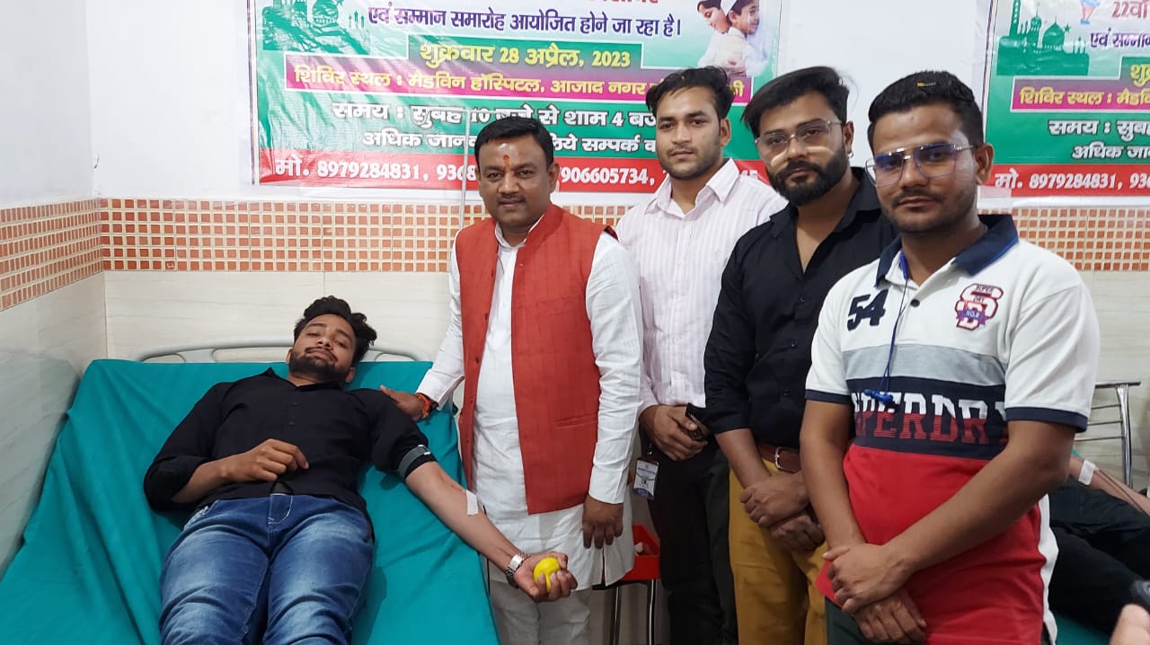 रुड़की।रक्तदान महादान इंसानियत ट्रस्ट रजि.द्वारा ईद मिलन कार्यक्रम में बाईसवां रक्तदान शिविर सम्मान का आयोजन आजाद नगर में किया गया,जिसका उद्घाटन मेयर गौरव गोयल ने फीता काटकर किया।रक्तदान करने वाले रक्तवीरों को मेयर गौरव गोयल द्वारा सम्मानित भी किया गया।इस दौरान युवाओं में रक्तदान के प्रति जोश देखने को मिला।साठ युवाओं ने रक्तदान कर मानवता की मिसाल कायम की।मेयर गौरव गोयल ने कहा कि कहा कि रक्तदान करना महान पुण्य का कार्य है,इसके दान करने से किसी भी प्रकार की शरीर में कमजोरी नहीं आती,बल्कि शरीर में एक नई ऊर्जा का एहसास होता है।बीस से पैंतालीस वर्ष के बीच का व्यक्ति वर्ष में दो से तीन बार रक्तदान कर सकता है,जिसे डोनर का ब्लड किसी जरूरतमंद के काम आ सके और किसी की जान बचाने उसका सहयोग हो सके,इसलिए इस कार्य को बड़ा पुनीत और पुण्य का कार्य माना गया है।नगर के वरिष्ठ भाजपा नेता व समाज सेवी संजय अरोड़ा ने भी रक्तदान करने वालों को सम्मानित कर उन्हें बधाई दी।टीम अध्यक्ष अनस गाजी ने कहा रक्तदान करने वाले वीरों की सराहना करते हुए कहा कि रक्तदान महादान इंसानियत ट्रस्ट ऐसे जरूरतमंद लोगों को रक्त दिलाती है,जिनके पास कोई रक्तदान करने वाला नहीं होता।रक्तदान शिविर में राहुल मलिक,डॉक्टर सानिब,अमजद अली,अरशद राजपूत, नोमान राव,फाजिल,माजिद अली,शाहवेज,समानी,शाहिद,डॉक्टर सद्दाम,अर्शिल,सलामत,फैसल,नावेद अली,राहुल अरोडा आदि प्रमुख रूप से मौजूद रहे।