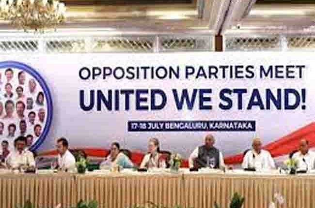 बेंंगलुरु। कांग्रेस समेत देश के 26 विपक्षी दलों ने भारतीय जनता पार्टी (भाजपा) नीत राष्ट्रीय जनतांत्रिक गठबंधन (एनडीए) को अगले साल होने वाले आम चुनाव में मिलकर चुनौती देने के लिए मंगलवार को यहां ‘इंडिया’ (इंडियन नेशनल डेमोक्रेटिक इन्क्लूसिव एलायंस) के गठन की घोषणा की।