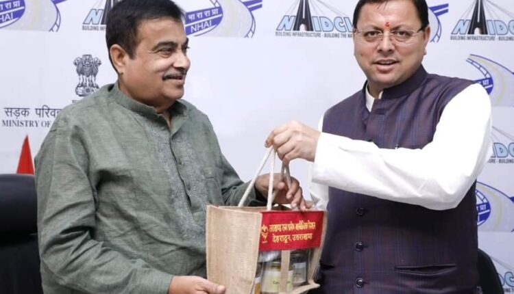 धामी ने नितिन गडकरी से की मुलाकात, भेंट में दिया कंडाली से बना स्टाल