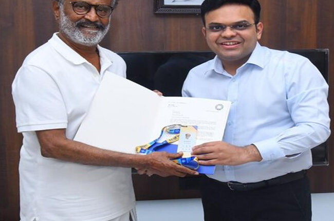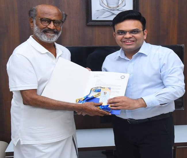 बीसीसीआई ने एक तस्वीर साझा करते हुए लिखा कि बीसीसीआई के सचिव जय शाह ने रजनीकांत को गोल्डन टिकट देकर सम्मानित किया। इस महान अभिनेता ने करोड़ों दिलों की धड़कन पर अपनी छाप छोड़ी है। उन्होंने कहा हमें यह घोषणा करते हुए खुशी हो रही है कि अभिनेता हमारे प्रतिष्ठित अतिथि के रूप में आईसीसी क्रिकेट विश्वकप 2023 की शोभा बढ़ाएंगे और अपनी उपस्थिति से इस सबसे बड़े क्रिकेट (cricket)आयोजन की चमक बढ़ाये।