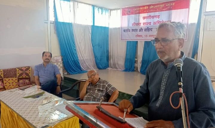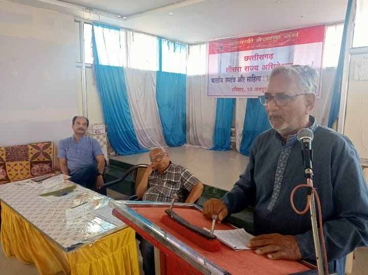 रायपुर। आम जनता के अधिकारों पर बढ़ते फासीवादी हमलों के दौर में लोकतंत्र ( Democracy) , संविधान और आजादी के संघर्ष में विकसित भाईचारे, सामाजिक न्याय और धर्मनिरपेक्षता जैसे मूल्यों की रक्षा के लिए संस्कृतिकर्मियों से एकजुट होने के आह्वान के साथ जनवादी लेखक संघ का तीसरा राज्य सम्मेलन 15 अक्टूबर को बिलासपुर ( Bilaspur) में संपन्न हुआ। सम्मेलन में पूरे प्रदेश से लगभग 100 प्रतिनिधियों ने हिस्सा लिया।सांगठनिक सत्र में परदेशीराम वर्मा अध्यक्ष तथा पी सी रथ सचिव निर्वाचित किए गए।
