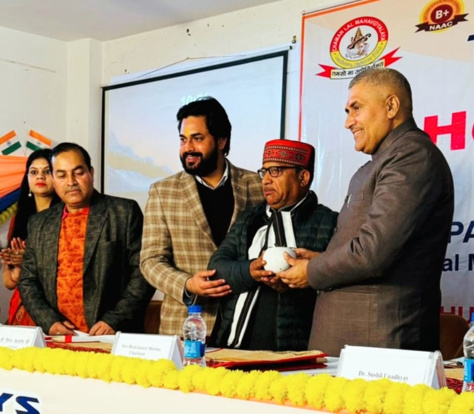 ​समारोह के मुख्य अतिथि, राष्ट्रीय स्वयं सेवक संघ, उत्तराखण्ड प्रान्त कार्यवाह श्री दिनेश सेमवाल ने कहा कि चमनलाल महाविद्यालय शिक्षा के क्षेत्र में उस प्रकाश पुंज की तरह कार्य कर रहा है जो कि क्षेत्र की दशा एवं दिशा को परिवर्तित करने वाला है। स्वर्णिम भारत की प्राचीन तस्वीर का साक्षात्कार कराते हुए श्री सेमवाल ने कहा कि जिन अधिकारों पर हम आज चर्चा कर रहे है उनका वर्णन भारतीय ग्रन्थों में पूर्व में ही वर्णित है। उन्होंने कहा कि पाश्चात्य शिक्षा एवं पाश्चात्य प्रभाव के कारण वर्तमान भारतीय पीढ़ी ने अपने संस्कारों, सांस्कृतिक मूल्यों एवं पूर्वजों के संस्कारों से मुंह मोड़ लिया है ।भारत आज विश्वगुरू बनने की राह पर अग्रसर है। उन्होंने कहा कि अगर विश्व में शांति एवं सुरक्षा चाहते हो तो उसका एक मार्ग केवल भारत से ही निकलता है।
