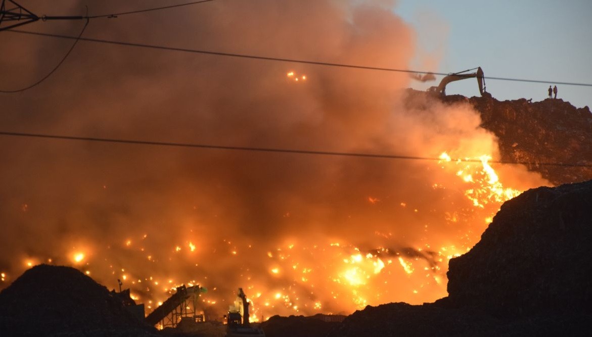 दिल्ली अग्निशमन सेवा के अनुसार, कचरे के विशाल पहाड़ से उत्पन्न गैसों के कारण रविवार शाम लैंडफिल साइट में भीषण आग लग गई। आसपास रहने वालों का कहना है कि उन्हें गले में दिक्कत और सांस लेने में परेशानी होने लगी है। दिल्ली अग्निशमन सेवा का कहना है कि आग को बुझाने में टीम जुटी है। आग लगने की सूचना रविवार शाम पांच बजकर 22 मिनट पर मिली थी।