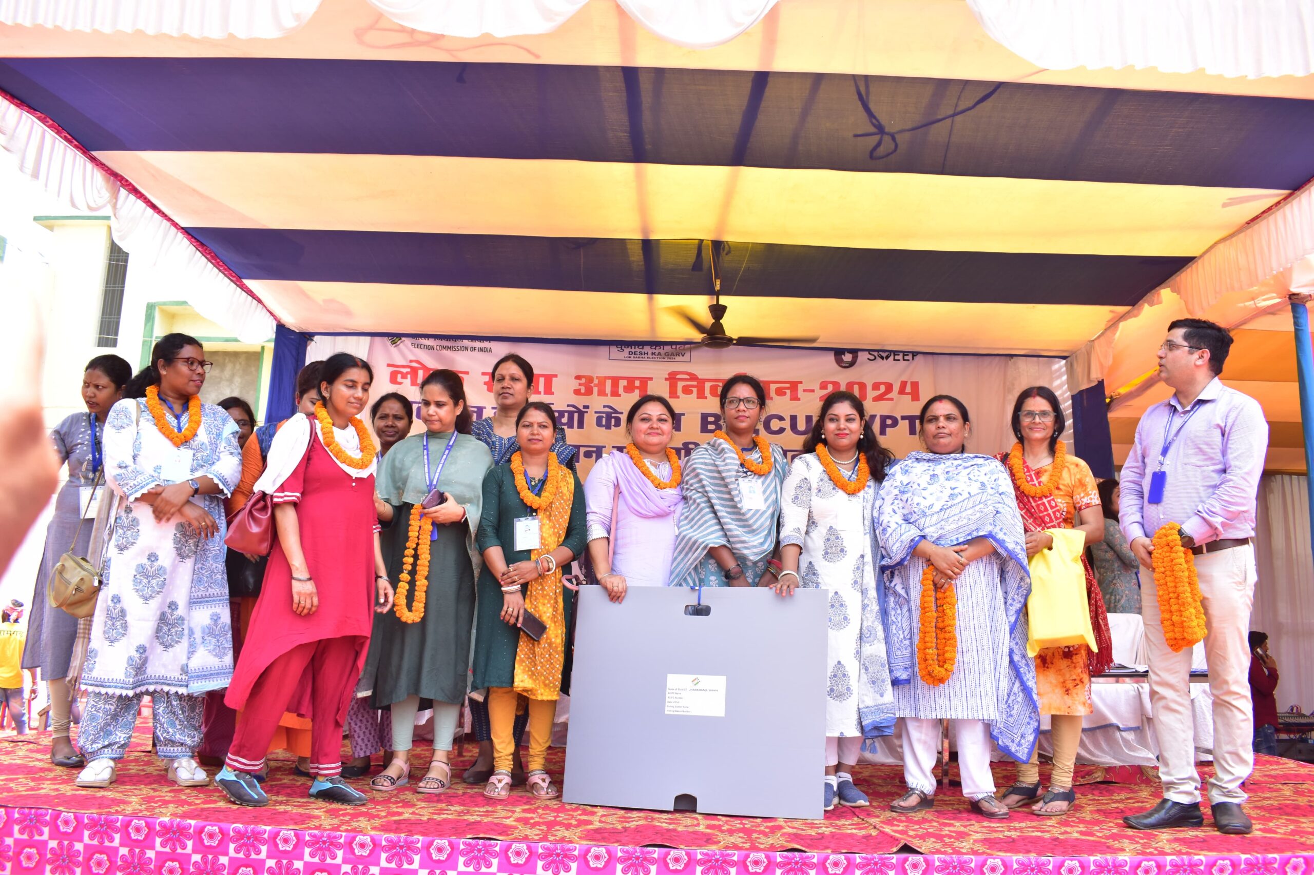 महिला मतदान पदाधिकारियों को मालाएं पहनाकर बढ़ाया गया हौसला