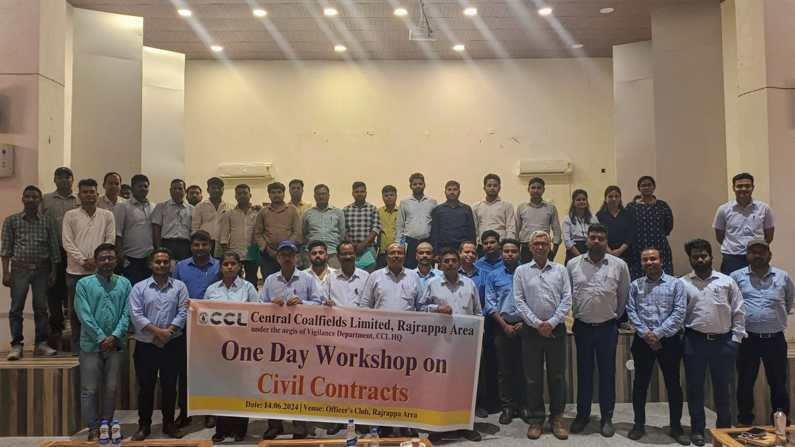 रांची। सतर्कता विभाग सीसीएल मुख्यालय रजरप्पा क्षेत्र के तत्वाधान में सीसीएल रजरप्पा क्षेत्र के द्वारा “सिविल संविदा विषय पर एक दिवसीय कार्यशाला” का आयोजन किया गया। कार्यक्रम का उद्घाटन महाप्रबंधक बिनोद कुमार ने किया। इस अवसर पर महाप्रबंधक ने कहा की जाने अंजाने में या जानकारी के अभाव में कई बार हमलोगों से कॉन्ट्रैक्ट करने में कोई चूक हो जाती है। इस तरह के कार्यशाला से सिविल क्षेत्र से संबंधित संविदा करने में काफी फायदा होगा और गलती में कमी आयेगी। इस कार्यशाला में मुख्य वक्ता के तौर पर स्टाफ अधिकारी (सिविल) विमल कुमार आजाद उपस्थित थे। कार्यक्रम में बरका सयाल, अरगडा, बरकाकाना, हजारीबाग तथा रजरप्पा क्षेत्र के 46 अधिकारी शामिल हुए। कार्यक्रम का संचालन तथा धन्यवाद प्रस्ताव सहायक प्रबंधक आशीष झा ने किया। इस अवसर पर परियोजना परियोजना पदाधिकारी (र.वा.प.) वी. मोहन बाबू, स्टाफ अधिकारी (का.) मनोज कुमार, क्षेत्रीय प्रशिक्षण अधिकारी एस. के. चौधरी सहित समस्त विभागाध्यक्ष उपस्थित थे।