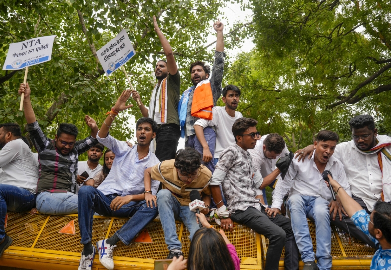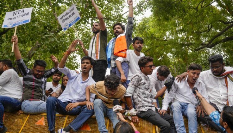 नई दिल्ली। कांग्रेस की छात्र शाखा एनएसयूआई ने सोमवार को जंतर मंतर पर नीट-यूजी में कथित अनियमितताओं और विश्वविद्यालय अनुदान आयोग की राष्ट्रीय पात्रता परीक्षा (यूजीसी-नेट) रद्द करने के खिलाफ विरोध प्रदर्शन किया।