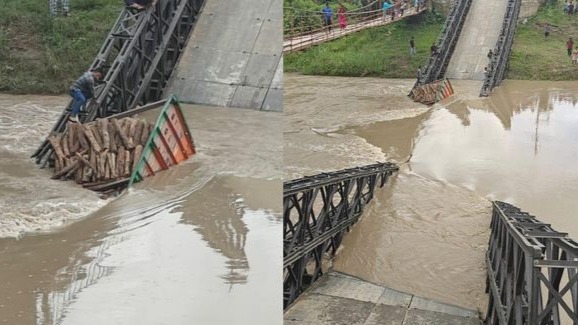 जानकारी के अनुसार इंफाल नदी पर बना यह बेली ब्रिज इंफाल पश्चिम जिले के मुटुम फिबौ और थौबल जिले के इरोंग खुनौ खुल को जोड़ता है। आज लकड़ी से लदा एक ट्रक पुल से नदी को पार कर रहा था, तभी पुल ढह गया और ट्रक नदी में गिर गया। बताया गया कि स्थानीय ग्रामीणों ने घटनास्थल से तीन लोगों को बचा लिया है। ट्रक का चालक अभी लापता है। लापता चालक को बचाने के लिए अभियान चलाया जा रहा है। नदी पर बने पुल के ढह जाने से सड़क मार्ग पूरी तरह अवरुद्ध हो गया है। विभागीय अधिकारी पुल ढहने के कारणों की जांच कर रहे हैं।