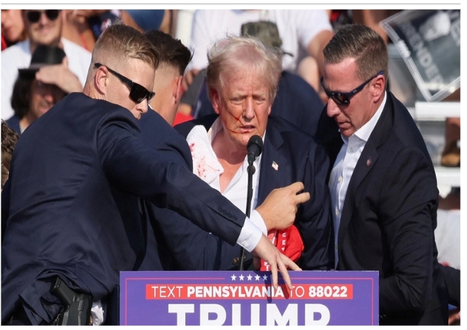 ट्रंप रैली में अवैध सीमा पार के मामलों में वृद्धि के बारे में राष्ट्रपति जो बाइडेन के खिलाफ बोल रहे थे तभी कम से कम पांच गोलियां चलने की आवाज सुनायी दी। जैसे ही सीक्रेट सर्विस के एजेंट उनकी ओर बढ़े तो ट्रंप ने अपना कान पकड़ लिया। एजेंटों के चिल्लाने पर वह जमीन पर बैठ गए। कुछ मिनटों बाद ट्रंप खड़े हुए, सीक्रेट सर्विस के एजेंटों ने उन्हें घेर लिया था। उन्होंने ट्रंप के कान से खून बहने पर उन्हें मंच से बायीं ओर ले जाने की कोशिश की।
