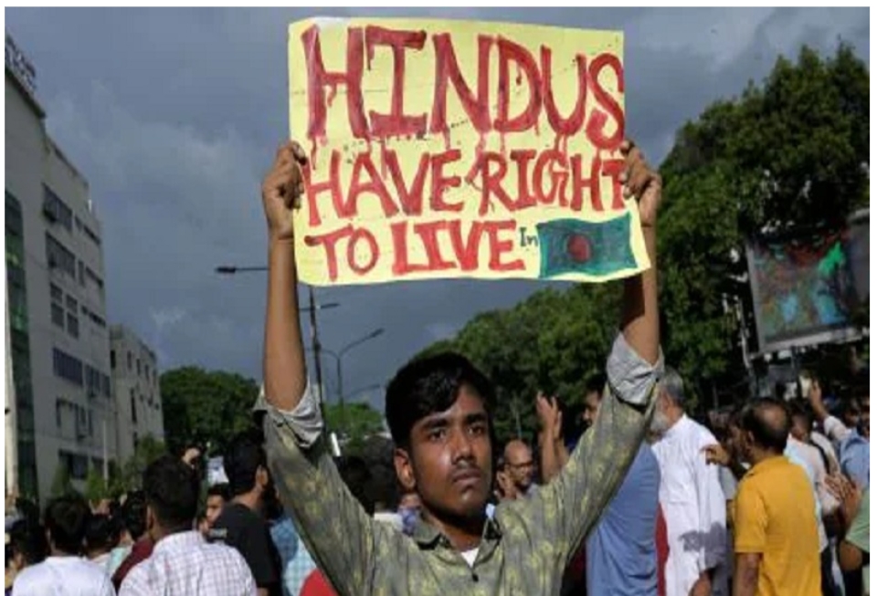 ढाका। बांग्लादेश में शेख हसीना के प्रधानमंत्री पद से इस्तीफा देने के बाद अल्पसंख्यक हिंदुओं पर हमले हो रहे हैं। कट्टरपंथियों ने हिंदुओं के मंदिरों पर हमले किए। उनके घरों को लूटा गया है और आग लगा दी गई। हिंसा के डर से बड़ी संख्या में हिंदू सब कुछ छोड़कर सीमावर्ती क्षेत्रों की तरफ चले गए हैं। शुक्रवार को हिंदू जागरण मंच ने ढाका में प्रदर्शन किया। बांग्ला अखबार ढाका ट्रिब्यून के मुताबिक, शाहबाग चौक पर हजारों हिंदू जमा हुए और हिंसा के खिलाफ आवाज उठाई। उन्होंने हरे कृष्णा-हरे रामा का नारा भी लगाया।