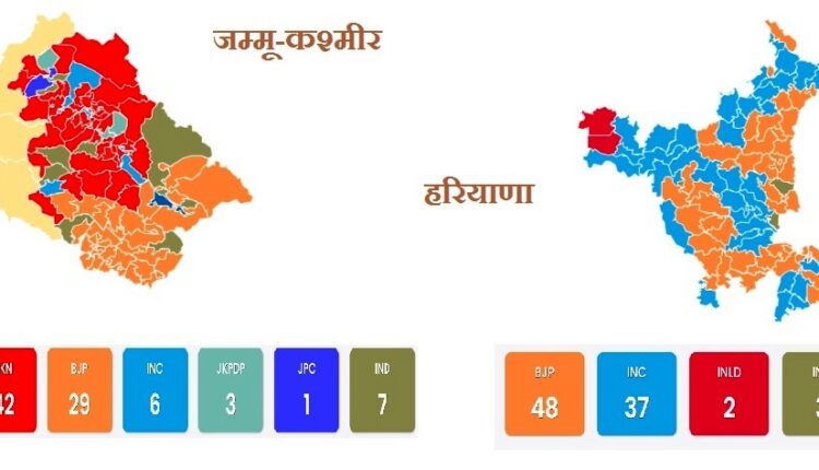 नई दिल्ली। जम्मू-कश्मीर विधानसभा चुनाव में नेशनल कॉन्फ्रेंस (एनसी) और कांग्रेस के गठबंधन ने शानदार प्रदर्शन करते हुए बहुमत हासिल किया है। वहीं भाजपा ने हरियाणा में सत्ता विरोधी लहर को लेकर राजनीतिक पंडितों के अनुमानों को धता बताते हुए लगातार तीसरी बार जीत हासिल की है।
