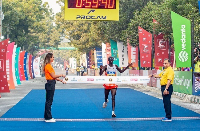 जोशुआ चेप्टेगी ने वेदांता दिल्ली हाफ मैराथन के पुरुष वर्ग और एलेमाडिस इयायु ने महिला वर्ग का खिताब जीता