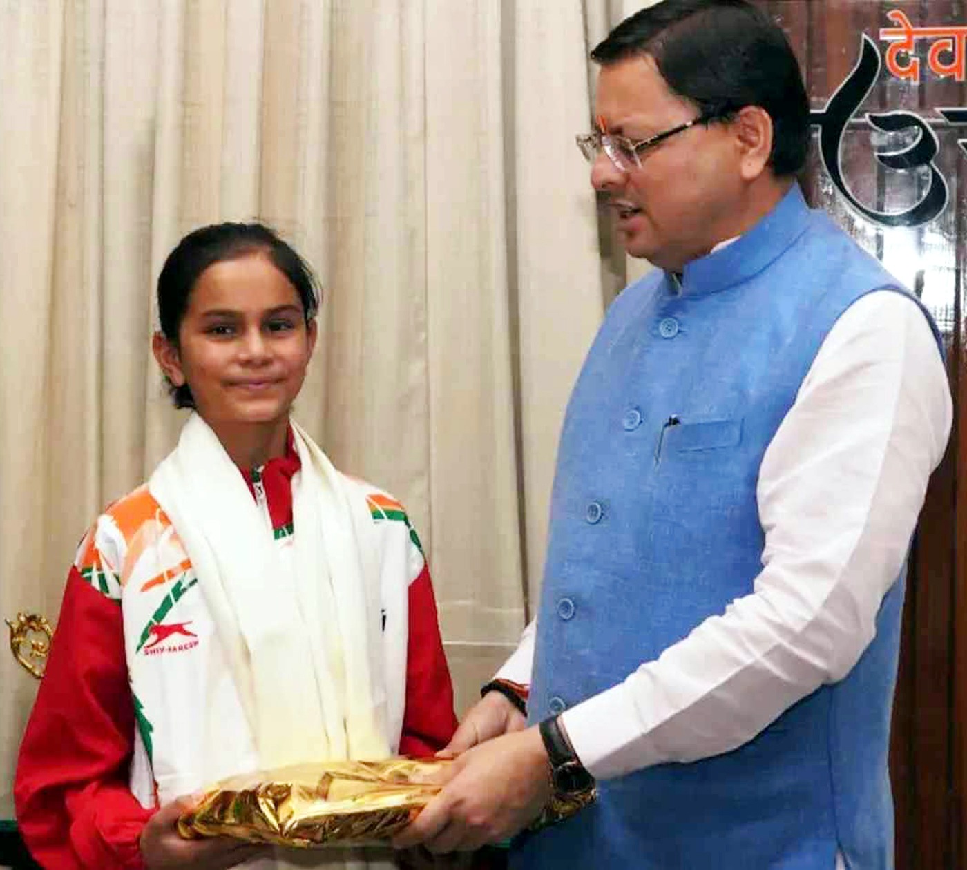 नैनीताल। नैनीताल के समीपवर्ती ग्रामीण क्षेत्र मंगोली की निवासी भारतीय बॉक्सर दीपाली थापा ने बीते सितंबर माह में दुबई-अबूधाबी में आयोजित जूनियर एशियाई बॉक्सिंग चैंपियनशिप में भारत के लिये स्वर्ण पदक जीतकर इतिहास रच दिया था। इस उपलब्धि पर रविवार को देहरादून में मुख्यमंत्री पुष्कर सिंह धामी ने दीपाली को प्रतीक चिह्न और शॉल ओढ़ाकर सम्मानित किया तथा उनके उज्ज्वल भविष्य की कामना की।