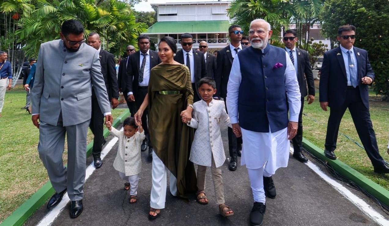 इस दौरान, अपने भव्य स्वागत को लेकर प्रधानमंत्री नरेन्द्र मोदी ने राष्ट्रपति इरफान अली का हृदय से आभार व्यक्त किया। उन्होंने कहा कि 56 वर्षों के बाद किसी भारतीय प्रधानमंत्री का गयाना की यात्रा पर आना हमारे संबंधों में एक महत्वपूर्ण मीर का पत्थर है। मोदी ने कहा कि गुयाना के साथ मेरा निजी रूप से गहरा नाता रहा है। लगभग 24 वर्ष पहले एक सामान्य नागरिक रूप में उन्हें यहां आने का अवसर मिला था। भारत और गुयाना के संबंध कितने ऐतिहासिक और गहरे हैं, उसकी झलक उन्होंने उस वक्त देखी थी। आज प्रधानमंत्री के रूप में एक बार फिर यहां आना उनके लिए सौभाग्य की बात है। उन्होंने कहा कि राष्ट्रपति इरफान अली का भारत के साथ एक विशेष और अटूट नाता है। पिछले वर्ष उन्होंने मुख्य अतिथि के रूप में प्रवासी भारतीय दिवस की शोभा बढ़ाई। उनकी यात्रा से हर क्षेत्र में हमारे सहयोग को नई ऊंचाइयों पर ले जाने की प्रेरणा मिली थी। इसी सकारात्मक भाव से आगे बढ़ते हुए हम अपनी पारस्परिक लाभकारी साझेदारी की रचना कर रहे हैं।