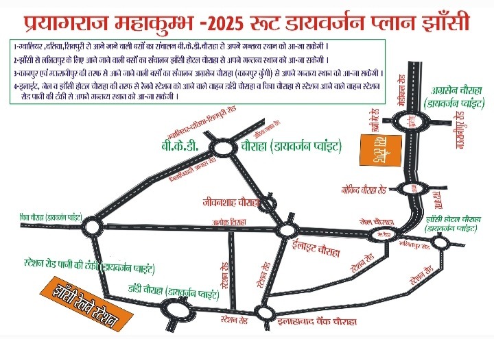 झांसी। यदि आपको झांसी से बाहर बस द्वारा जाना है तो आपके लिए यह खबर अहम है। महाकुम्भ -2025 के दौरान पड़ने वाले महत्वपूर्ण शाही स्नान के चलते यातायात अधिक होने के कारण झाँसी शहर क्षेत्र में प्रस्तावित रूट डायवर्जन प्लान पुलिस विभाग द्वारा 11 जनवरी से लागू किया गया है।