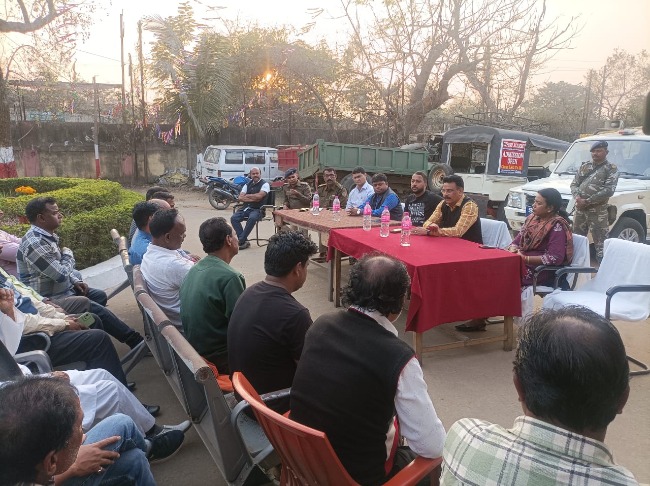 गोला(रामगढ़)।बुधवार की शाम गोला थाना परिसर में शांति समिति समिति की अहम बैठक हुई। बैठक की अध्यक्षता अनुमंडलाधिकारी ने की। बैठक में उपस्थित दोनो समुदाय के प्रबुद्ध जनो एवं विभिन्न राजनीतिक दलों के नुमाइंदों से उन्होंने अपील की कि शांति व्यवस्था को बनाए रखने में वो अपनी महत्वपूर्ण भूमिका का निर्वहन करें। उन्होंने कहा कि दोषी कोई भी हो उसे बख्शा नहीं जाएगा। दोषी व्यक्ति पर कानूनी कार्रवाई की प्रक्रिया जारी है। सोशल मीडिया पर भी प्रशासन की पैनी नजर है। किसी को भी सांप्रदायिक सौहार्द बिगाड़ने की अनुमति नहीं दी जाएगी। ज्ञात हो कि मंगलवार को सरस्वती मूर्ति विसर्जन को लेकर सोसोकलाँ में झड़प की घटना हुई थी, इसी के मद्देनजर ये बैठक हुई। मौके पर प्रखंड विकास अधिकारी डॉ.सुधा वर्मा, अंचलाधिकारी समरेश प्रसाद भंडारी, इंस्पेक्टर पंकज कुमार, थाना प्रभारी अभिषेक प्रताप, काँग्रेस नेता बजरंग महतो, सांसद प्रतिनिधि राजीव जायसवाल सहित दोनों समुदायों के प्रबुद्ध जन तथा विभिन्न राजनीतिक दलों के प्रतिनिधि मौजूद थे।