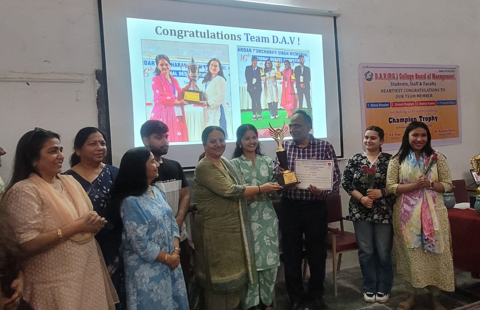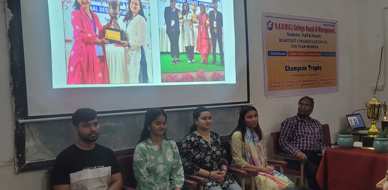 यह उल्लेखनीय सफलता भविष्य के विद्यार्थियों को प्रेरणा देने के साथ-साथ डी.ए.वी. (पी.जी.) कॉलेज को राष्ट्रीय मंचों पर प्रतिनिधित्व करने हेतु और अधिक सशक्त बनाएगी। यह केवल एक प्रतियोगिता की जीत नहीं, बल्कि संस्थान के सामूहिक प्रयास, नेतृत्व, मार्गदर्शन और छात्र-संकल्प की जीत है। कार्यक्रम में आज इस अवसर पर प्रोफेसर देवना जिंदल, प्रोफेसर सविता रावत, प्रोफेसर रमेश शर्मा,डॉ पाठक, डॉ डी के गुप्ता प्रो त्यागी, मंत्रणा समिति की डॉक्टर ओनीमा शर्मा, नैना श्रीवास्तव डॉ अनूप मिश्रा डॉ रवि शरण सहित बड़ी संख्या में छात्र-छात्राएं उपस्थित रहे l