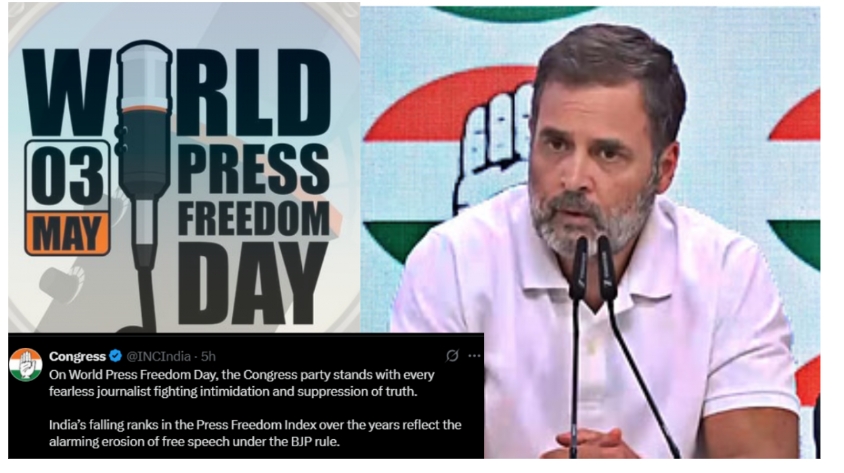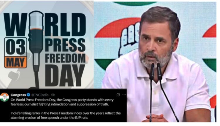 कांग्रेस ने विश्व प्रेस स्वतंत्रता दिवस पर अपने आधिकारिक ‘एक्स’ पेज पर एक पोस्ट में शनिवार को कहा , “विश्व प्रेस स्वतंत्रता दिवस पर कांग्रेस ऐसे हर निडर पत्रकार के साथ खड़ी है जो धमकी और सच को दबाने के खिलाफ लड़ रहा है। पिछले कुछ वर्षों में प्रेस स्वतंत्रता सूचकांक में भारत की गिरती रैंकिंग भाजपा शासन के तहत अभिव्यक्ति की स्वतंत्रता के खतरनाक क्षरण को दर्शाती है।”