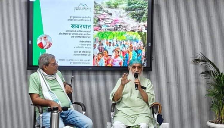 दून लाइब्रेरी में ‘खबरपात ’ के दूसरे संस्करण में आपदाओं के कारण और पंचायत चुनाव में अनियमितता पर चर्चा