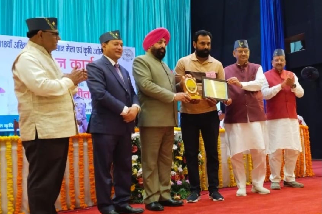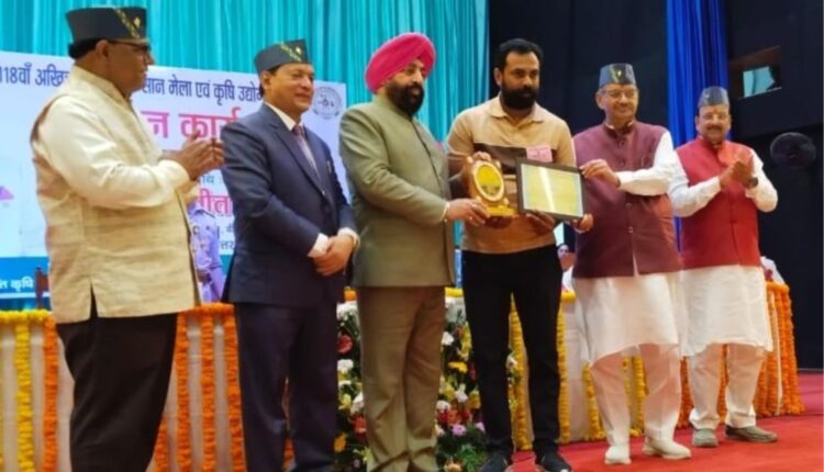 रुड़की।पंतनगर में आयोजित किया गया 118-वें कृषि कुम्भ किसान मेले एवं कृषि उद्योग प्रदर्शनी में वर्मी कंपोस्ट खाद का उत्पादन कर किसानों को जैविक खेती के प्रति जागरूक कर रहे हैं निशांत चौहान को यह सम्मान प्रदान किया गया है।हरिद्वार जनपद के कलालहटी गाँव निवासी किसान निशांत चौहान को राज्यपाल और कृषि मंत्री ने पंतनगर में आयोजित 118-वें कृषि कुम्भ किसान मेले एवं कृषि उद्योग प्रदर्शनी कार्यक्रम में सम्मानित किया।निशांत चौहान को यह सम्मान जैविक एवं प्राकृतिक गोआधारित खेती प्रगतिशील किसान के रुप में मिला है।वर्मी कंपोस्ट खाद का उत्पादन कर किसानों को जैविक खेती के प्रति जागरूक कर रहे हैं चौहान पिछले कई वर्षों से लगातार जैविक खेती को बढ़ावा देने में मेहनत कर रहे हैं,इसके तहत उन्हाेंंने वर्मी कंपोस्ट खाद बनाना शुरू किया।शुरुआत में थोड़ा कठिन लगा पर अपने दृढ़ विश्वास से वर्मी कंपोस्ट खाद बनाने के सफल हुए।धीरे-धीरे उन्होंने अपनी खेती को जैविक किया।निशांत चौहान अब वर्मी कंपोस्ट खाद का उत्पादन आसपास के क्षेत्रों में कर रहे हैं और ग्रामीणों को जैविक खेती के बारे में भी जागरूक कर रहे हैं।संदल सिंह आर्गैनिक फार्म की 2023 में की शुरुआत कलालहटी निवासी निशांत चौहान ने अपने दादाजी के नाम पर 2023 में संदल सिंह आर्गैनिक फार्म की।गौ आधारित जैविक खेती खेती करने का रास्ता अपनाया।देसी गायों से मिलने वाले गोबर और गोमूत्र से जैविक उत्पाद बना रहे हैं।निशांत चौहान ने गाँव के अन्य किसानों को भी प्रोत्साहित किया है और वे उनकी खेती देखकर पञ्चगव्य आधारित जैविक खेती की ओर उन्मुख भी हो रहे हैं।डेयरी पालन कर अब शुद्ध देसी गाय का घी खूब भा रहा है,निशांत को आर्डर पर आर्डर मिल रहें हैं।निशांत चौहान डेयरी पालन कर शुद्ध घी लोगों को उपलब्ध करा रहे हैं।निशांत ने बताया कि उनकी डेयरी में देसी गाय है। गाय के दूध के साथ-साथ घी लोगों को खूब भा रहा है।शुद्ध घी की ज्यादा डिमांड हो रही है। आर्डर पर आर्डर मिल रहे हैं।निशांत चौहान ने बताया कि धीरे धीरे शुद्ध देसी घी का उत्पादन बढ़ाया जाएगा और अच्छी अच्छी देसी नस्ल की गाय खरीद कर वह सेवा के साथ-साथ बिजनेस भी बढ़ेगा।