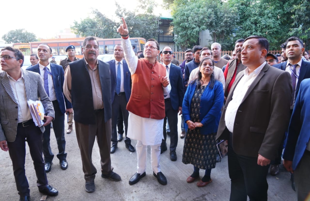 देहरादून। मुख्यमंत्री श्री पुष्कर सिंह धामी ने आज दोपहर अचानक सचिवालय से सीधे आईएसबीटी देहरादून पहुंचकर वहाँ की व्यवस्थाओं का औचक निरीक्षण किया। मुख्यमंत्री के अचानक पहुँचने से प्रशासनिक अधिकारियों में हड़कंप की स्थिति बन गई। उन्होंने परिसर में स्वच्छता, यात्रियों की सुविधा, संचालन व्यवस्था और परिवहन प्रबंधन का बारीकी से निरीक्षण किया।